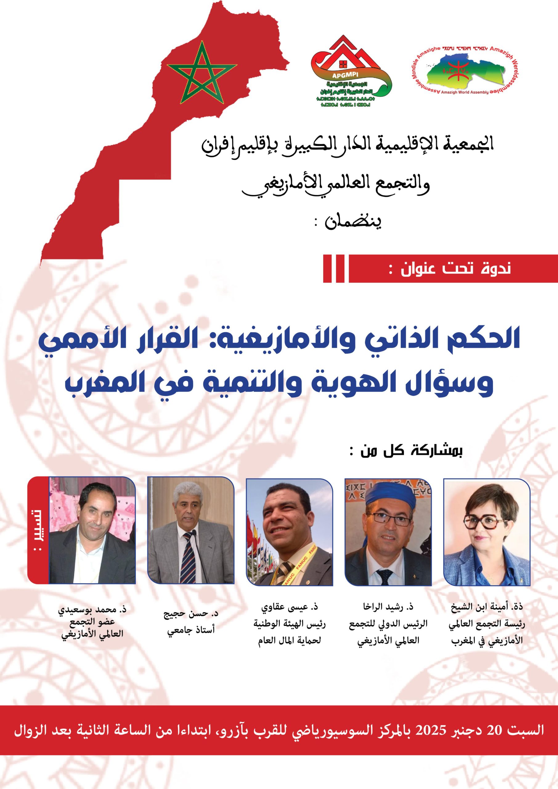 وتأتي هذه الندوة في سياق النقاش الوطني المتواصل حول قضايا الحكم الذاتي، والهوية الأمازيغية، والتنمية المجالية، في ظل التحولات السياسية والمؤسساتية التي يشهدها المغرب، وما تطرحه القرارات الأممية من إشكالات وفرص لتعزيز الوحدة الهوياتية والتنمية الشاملة.
