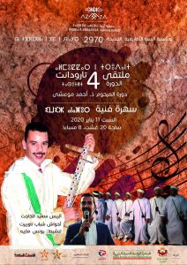 ويتضمن البرنامج العام للملتقى، بمناسبة السنة الأمازيغية الجديدة 2970، تنظيم السهرة الفنية الكبرى بساحة 20 غشت يوم 11 يناير بمشاركة مجموعة من الفنانين والمجموعات الغنائية وفرقة أحواش، وتنظيم الندوة الدراسية الوطنية يومي 4 يناير 2020 حول موضوع ” الثقافة المغربية وتدبير التنوع” بمشاركة باحثين وفاعلين مدنيين.