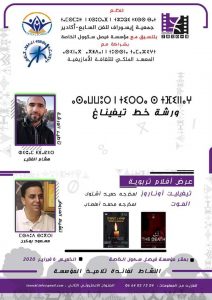 كما ستنظم ذات الجمعية، ورشة كتابة التعليق والجينيريك بتيفيناغ، من تأطير عبد العزيز الشلح، وذلك يوم السب 08 فبراير بداري الحي السلام بأكادير.