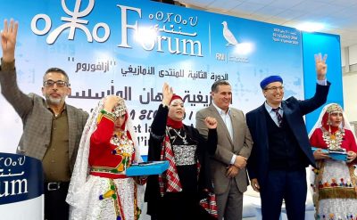 واختار المُشرفون على “المنتدى” تكريم كل من رشيد الراخا، رئيس التجمع العالمي الامازيغي، والفنانة، فاطمة تبعمرانت، والفاعل الأمازيغي محمد حنداين، والكاتب والروائي، محمد أكوناض، تقديرا لنضالاتهم ومساهمتم في الترافع عن القضية الأمازيغية.