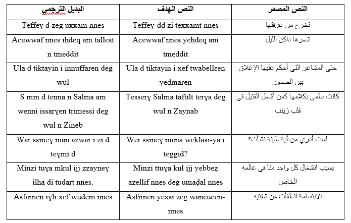 في حين في الترجمة إلى الامازيغية نجد على الشكل التالي: