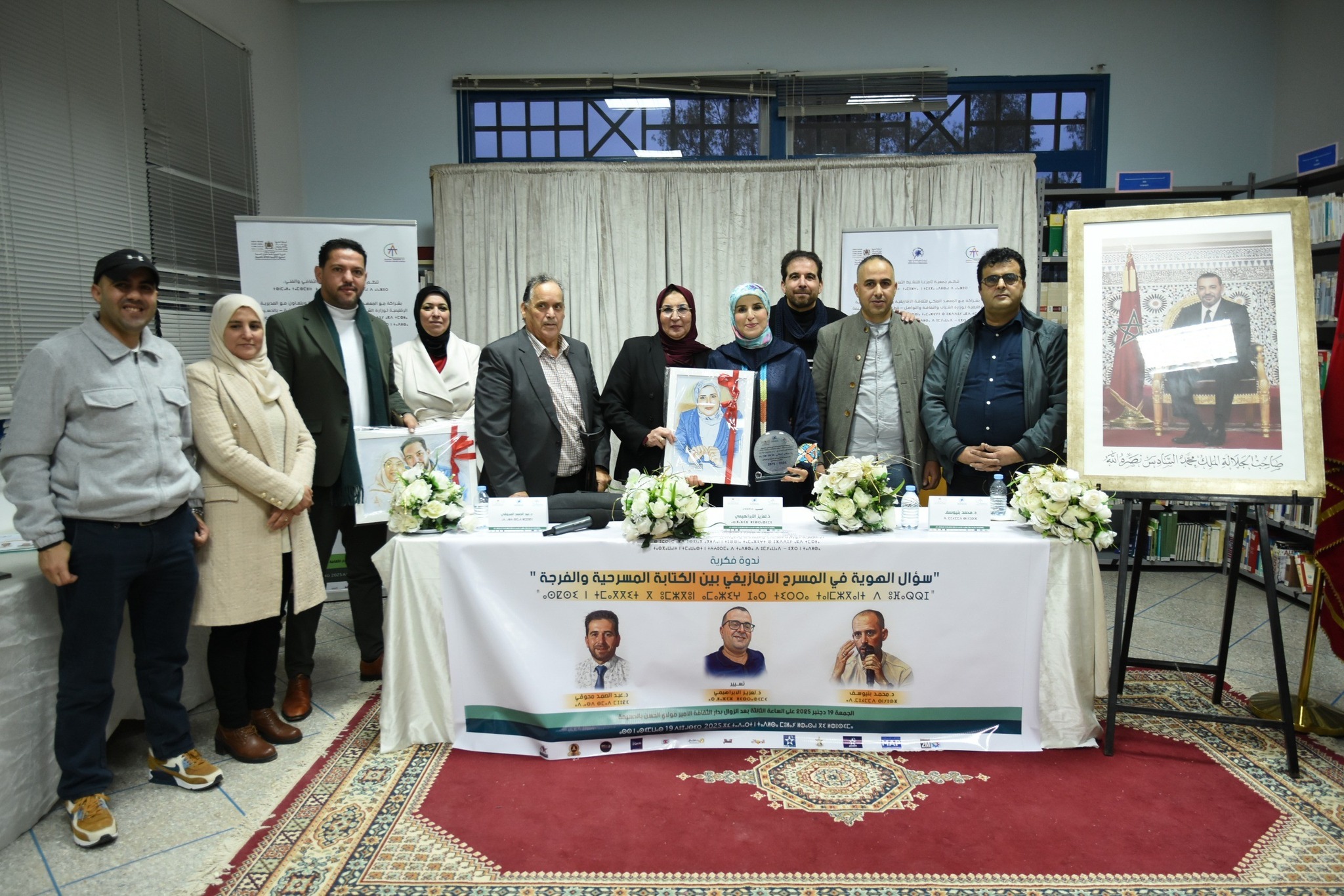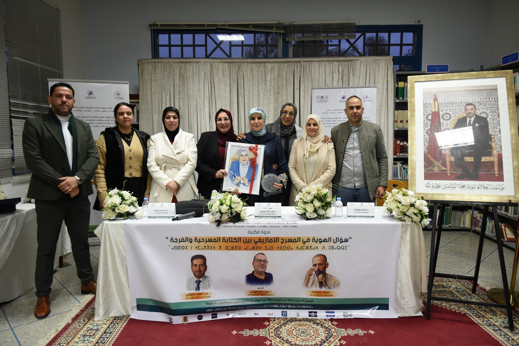 وشكلت هذه الندوة محطة فكرية وثقافية بارزة، جمعت نخبة من الباحثين والمبدعين الذين اغنوا النقاش حول قضايا الهوية والكتابة المسرحية الأمازيغية وتحولاتها الجمالية والفرجوية، حيث أطرها كل من الأستاذ عبد الصمد مجوقي، الباحث والمؤلف في مجالات الأدب والتاريخ والحضارة، والأستاذ محمد بنيوسف، الناشط الأمازيغي والمؤلف المسرحي والباحث في القانون، فيما تولى تسيير أشغال الندوة الأستاذ لعزيز الإبراهيمي الناشط الأمازيغي والممثل والمؤلف المسرحي والباحث في المسرح.