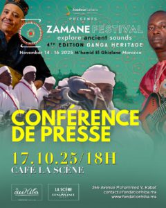 تحتضن مدينة الرباط، مساء الجمعة 17 أكتوبر الجاري، الندوة الصحفية الرسمية لإطلاق الدورة الرابعة من مهرجان “زمان 2025″، التي تنظمها جمعية جذور الصحراء، وذلك ابتداءً من الساعة السادسة مساءً بمقهى “لا سين”.