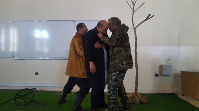 وبعد انتهاء العرض، وكلمات أعضاء الجهة الساهرة على تنظيمه في الكلية ممثلة في شعبة الدراسات العربية، أعربوا عن شكر السيد عميد الكلية للفرقة، وترحيبه بكافة الأعمال المسرحية الجادة. بعد ذلك تم الانتقال إلى المحور الثاني من النشاط المسرحي والمتعلق بتوقيع النص المسرحي “صخرة على الراعي” (ثسضاث خ أمكسا) للأستاذ عبد الواحد حنو، وهي المسرحية المعروضة نفسها.