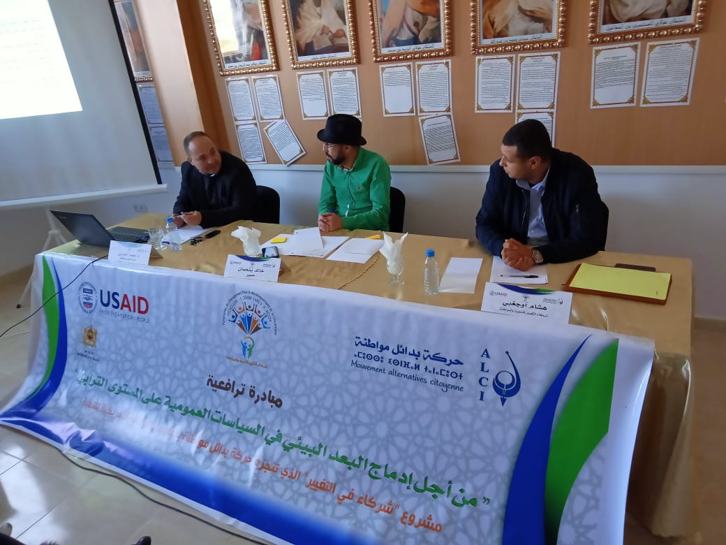 اللقاء الذي أسهم في تأطيره كل من الفاعل المدني والحقوقي الأستاذ محمد الحموشي والأستاذ هشام اوجغبي الباحث في القانون الخاص، حاولا من خلاله تقريب الحضور من القوانين التي تنظم مجال البيئية في وضع السياسات العمومية، وقد أشار محمد الحموشي في عرضه إلى أن مسألة الاهتمام البيئي اكتسبت الصبغة القانونية ببلادنا بداية القرن 20 خاصة ظهير25 غشت 1914 المتعلق بتنظيم المؤسسات المضرة أو المزعجة أو الخطيرة ومع دستور 2011 اكتسب الحق في البيئة السليمة دينامية جديدة وقوة دستورية حيث تبنى مبدأ التنمية المستدامة وحماية الموارد الطبيعية والحق في الولوج إلى الماء و البيئة الصحية إلى جانب مجموعة من المواثيق التي تنظم المعاملات البيئية، لاسيما القوانين التنظيمية للجماعات 113.14التي تجبر الجماعات الترابية على برمجة مشاريع تعنى بالتنمية الاقتصادية والاجتماعية في برامج العمل وكذا العناية بالمرافق و التجهيزات العمومية.