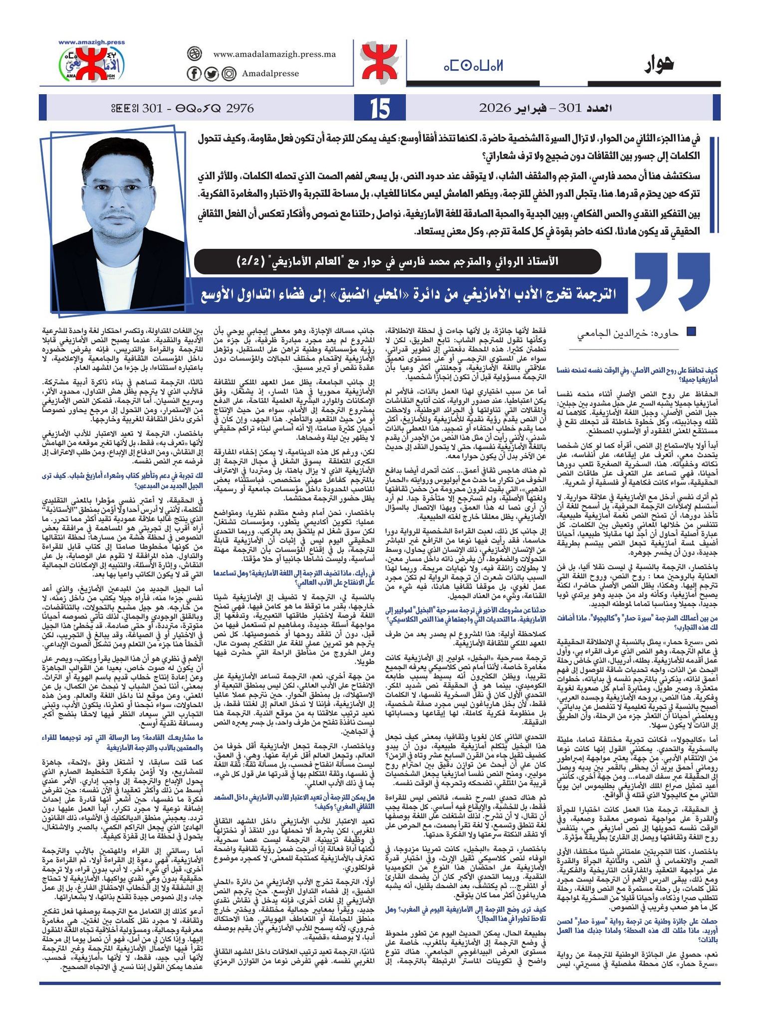 بين التفكير النقدي والحس الفكاهي، وبين الجدية والمحبة الصادقة للغة الأمازيغية، نواصل رحلتنا مع نصوص وأفكار تعكس أن الفعل الثقافي الحقيقي قد يكون هادئا، لكنه حاضر بقوة في كل كلمة تترجم، وكل معنى يستعاد.