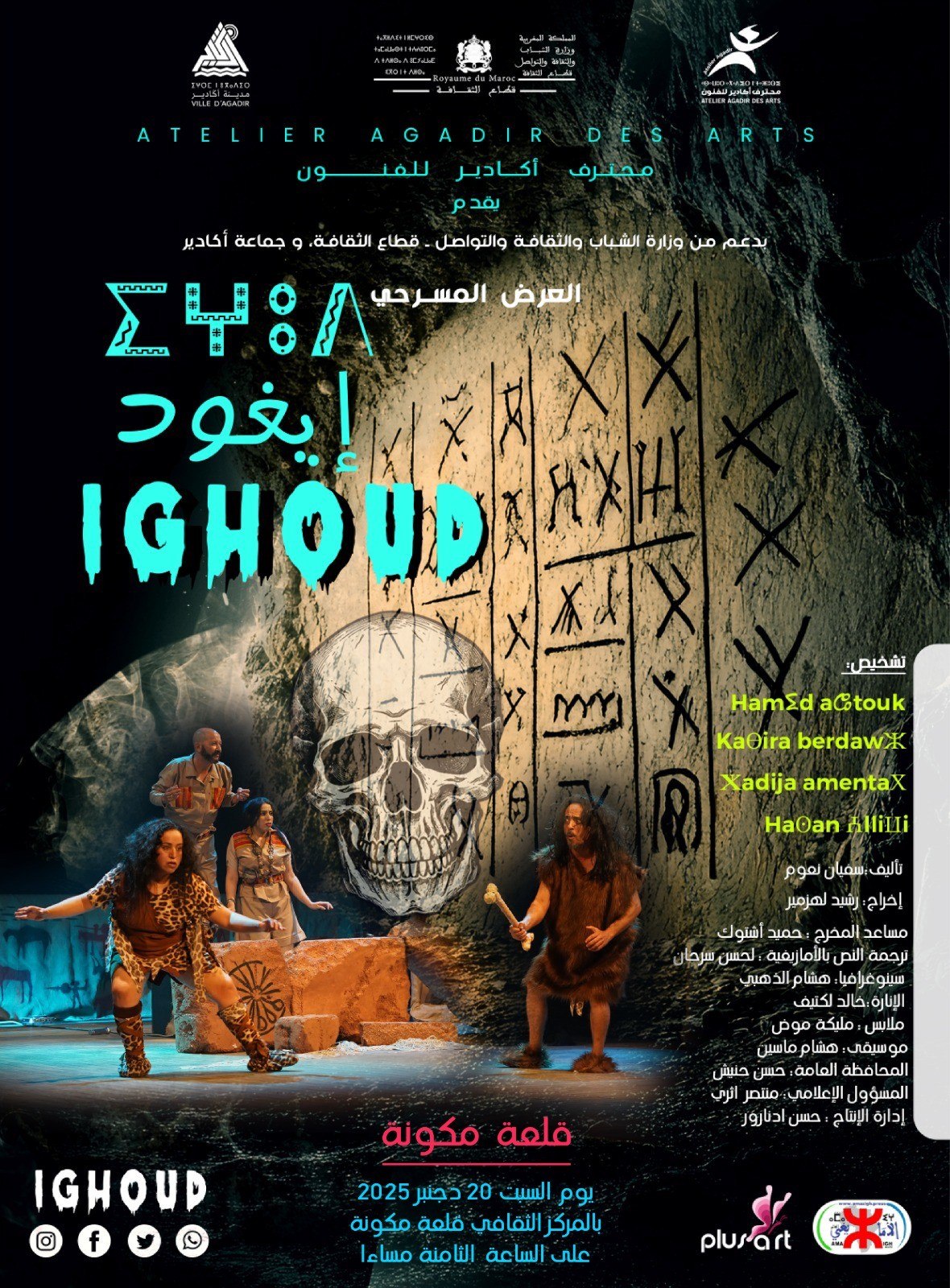 وفي هذا السياق، أعلن محترف أكادير للفنون عن استعداده لتقديم العرض الخامس للمسرحية، في إطار الدورة الخامسة لمهرجان قلعة مكونة للمسرح الأمازيغي، وذلك يوم السبت 20 أكتوبر 2025، بالمركز الثقافي لقلعة مكونة، على الساعة الثامنة مساءً. كما يرتقب أن يُقدَّم العرض السادس يوم الجمعة 27 دجنبر الجاري بمدينة زاكورة، ضمن فعاليات مهرجان زاكورة للمسرح.