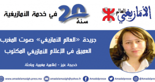 خديجة عزيز: جريدة «العالم الأمازيغي» صوت المغرب العميق في الإعلام الأمازيغي المكتوب صدر العدد الأول من جريدة «العالم الأمازيغي» الرائدة في الصحافة الأمازيغية بشمال إفريقيا، بتاريخ 31 ماي 2001، مما شكل حدثا مهما بالنسبة للإعلام المغربي الذي يعالج قضايا اللغة والثقافة الأمازيغية. جريدة «العالم الأمازيغي» بفضل جهود طاقمها الإداري والصحفي …