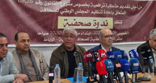 احتضن مقر النقابة الوطنية للصحافة المغربية بالرباط، صباح الخميس 09 أبريل 2026، ندوة صحفية نظمتها فعاليات مهنية في قطاع الصحافة، خُصصت لتقديم مذكرة ترافعية بخصوص مشروع القانون رقم 09.26 المتعلق بإعادة تنظيم المجلس الوطني للصحافة. وخلال هذه الندوة، عبّرت الهيئات والمنظمات النقابية المهنية لقطاع الصحافة والنشر (النقابة الوطنية للصحافة المغربية، …