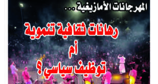صدر العدد الجديد 296 من جريدة “العالم الأمازيغي”، وتناول هذا العدد في ملفه الشهري موضوع “المهرجانات الأمازيغية بين الرهانات الثقافية والتنموية والتوظيف السياسي” نظرا لأهمية الموضوع خاصة على مستوى اثر هذه المهرجانات على الجانب الهوياتي والثقافي والتنموي، خاصة وان عدة حواضر ومدن ومناطق نائية بالمغرب تحتضن العديد من المهرجانات الفنية …
