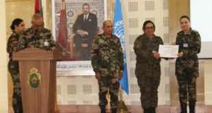 اختتمت اليوم الجمعة، بمقر قيادة القوات المسلحة الملكية للمنطقة الجنوبية بأكادير، دورة تكوينية موجهة للنساء في عمليات الأمم المتحدة لحفظ السلام. وقد تميز حفل اختتام هذه الدورة، المنظمة تنفيذا للتعليمات السامية لصاحب الجلالة الملك محمد السادس، القائد الأعلى ورئيس أركان الحرب العامة للقوات المسلحة الملكية، بتسليم الشواهد للنساء المشاركات، وذلك بحضور الفريق محمد …